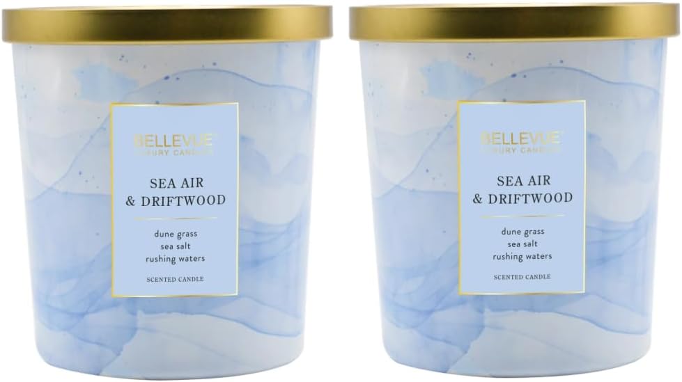 Bellevue Luxury Fragranced Candle, 12 OZ, Soy Blend Wax, Essential Oils, Long-Lasting Burn, Home Fragrances, Aromatherapy Home Scented Candles Scent: Sea Air & Driftwood (Pack of 2)