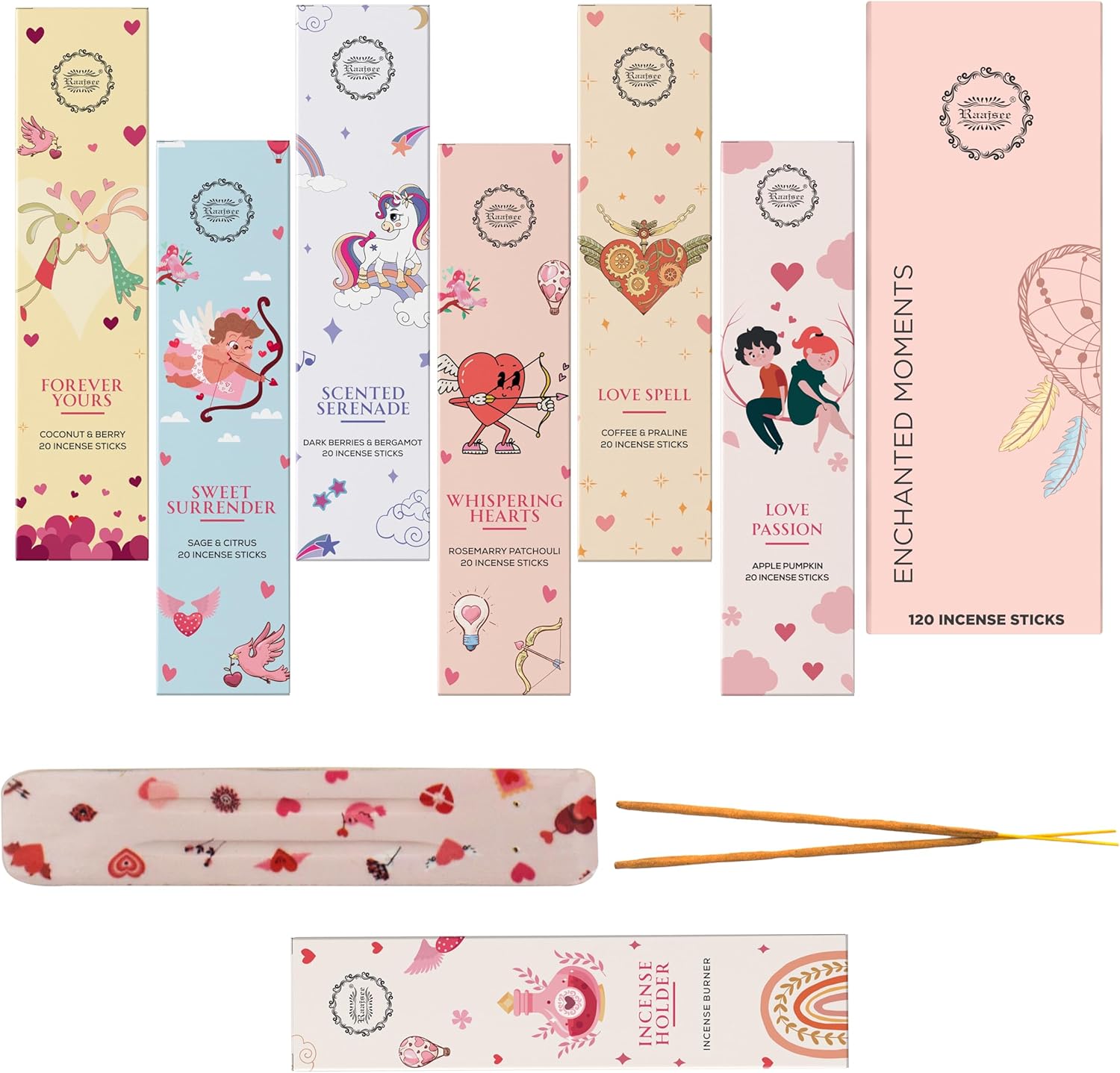 Raajsee Natural Incense Sticks with Inscent Holder, Pack of 6 Organic Insence-Sticks, 120 Incent Sticks, No Black Smoke,Witchy Gifts, Balsam & Cedar, Sandalwood, Apple Oak, Ylang Ylang, Vanilla