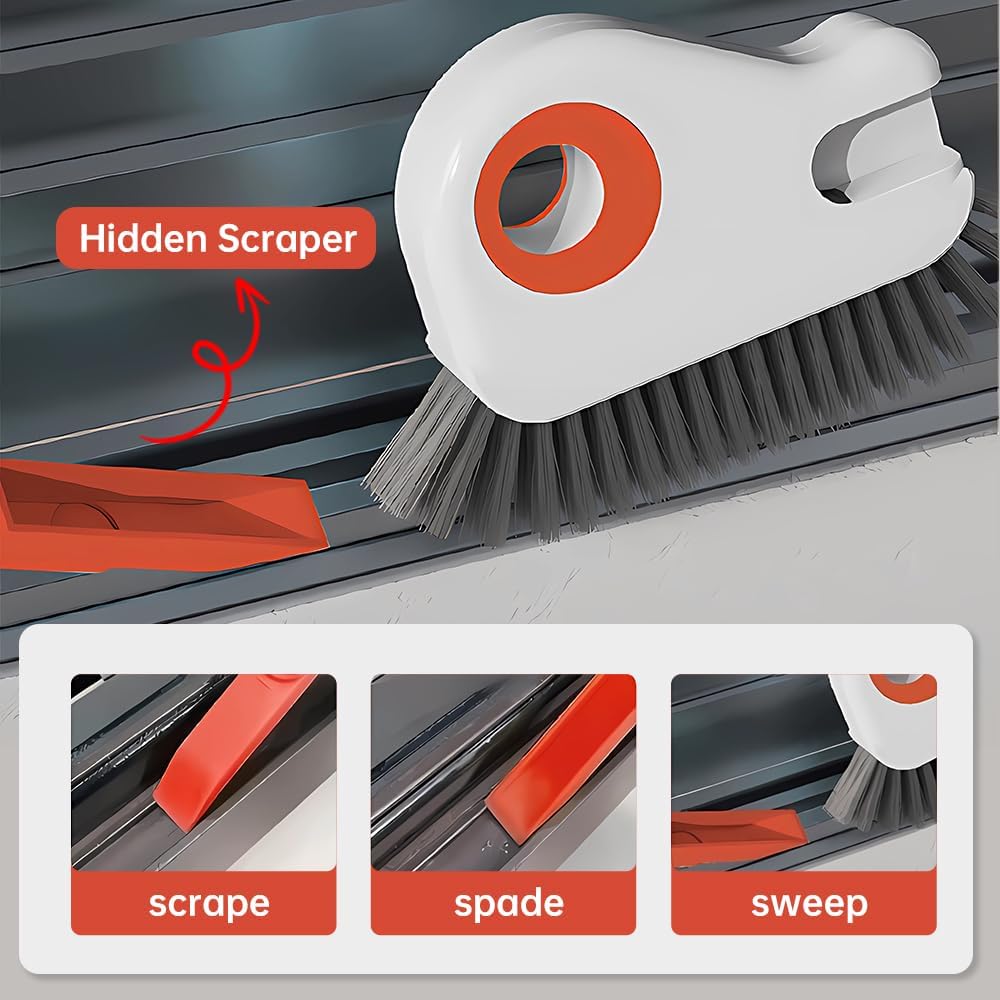 🔥【2-in-1 Groove Cleaning Brush】Our window cleaning brush combines a hard bristle brush with a hidden scraper.While the small groove dustpan design collects debris, ensuring thorough and convenient cleaning.