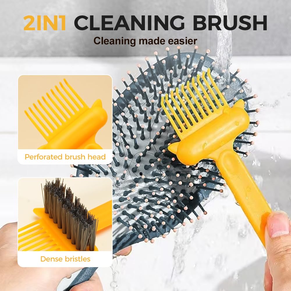 Dual-Sided Design: The innovative dual-sided structure delivers ultimate convenience. One side features highly elastic comb teeth to effortlessly remove hair from brush bristles, while the other side employs high-hardness bristles to quickly scrape away grease and stubborn grime from hairbrushes.