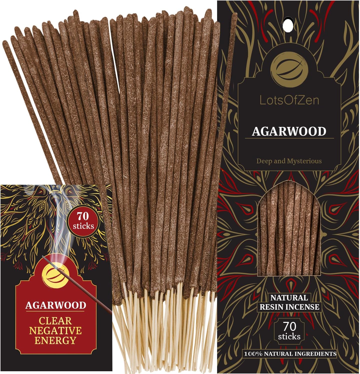 Agarwood Incense Sticks 70 Count – Natural Oud Wood Incense – Long-Burning – Arabic Oudh for Meditation and Relaxation Inspired by Traditional Bakhoor