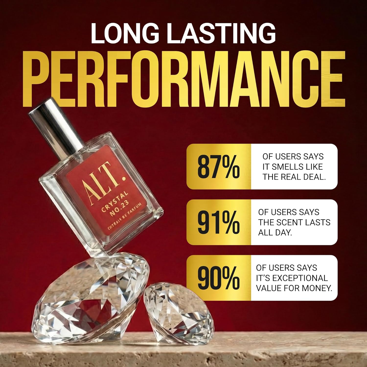 Signature Scent: Crystal No. 23 blends luxury and affordability into a refined, long-lasting fragrance inspired by Baccarat Rouge 540, designed as an elegant everyday perfume choice for both men and women