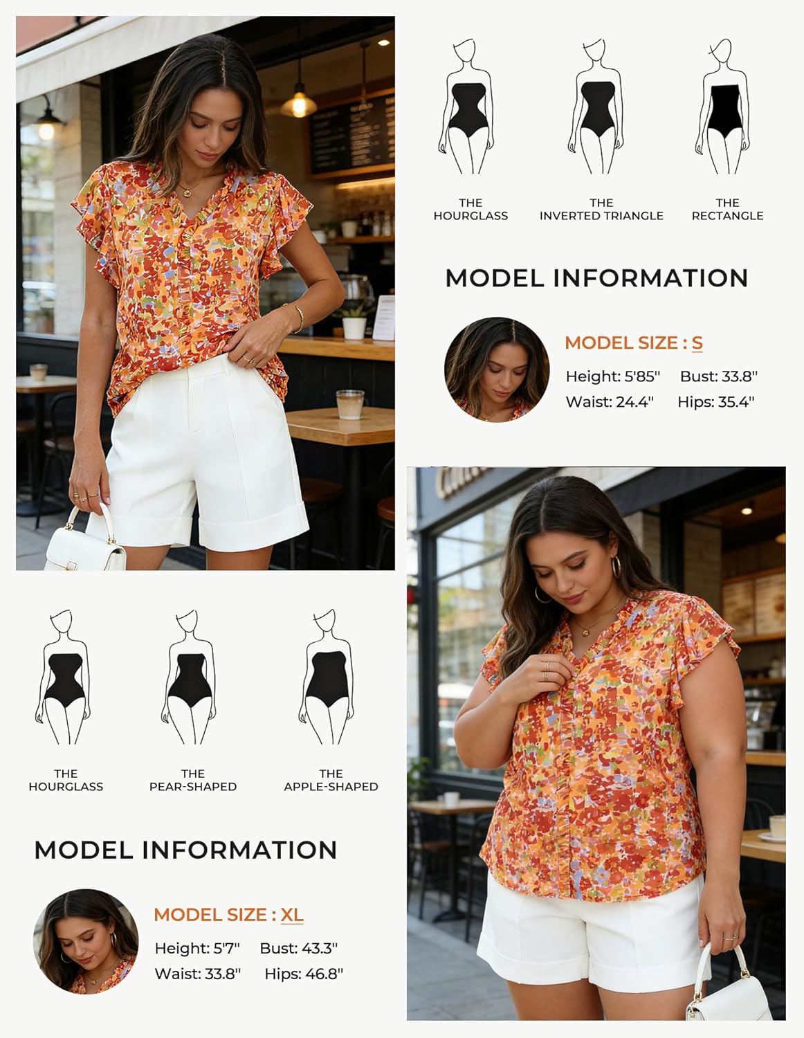 GRACE KARIN 2026 Boho Tops for Women Dressy Casual,Ruffle Sleeve Chiffon Blouses Work Shirts,V Neck Summer Fashion Clothes
