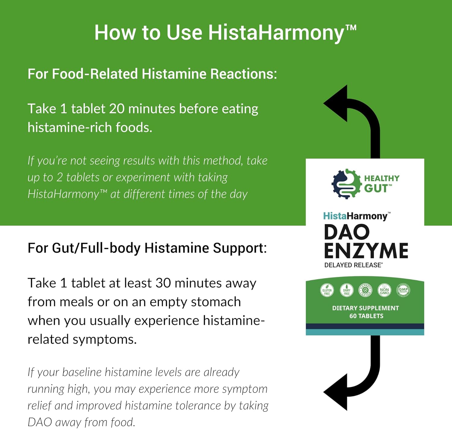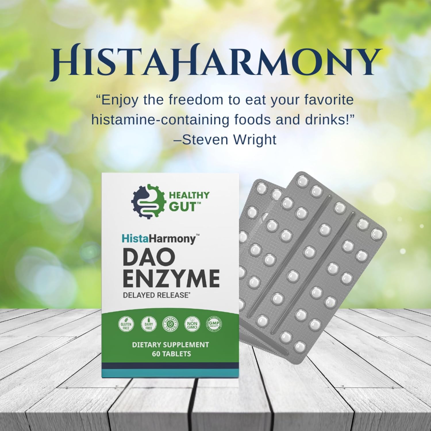 Healthy Gut HistaHarmony | Delayed Release DAO Enzyme Supplement | 30,000 HDU Diamine Oxidase Histamine Blocker | 60 Servings