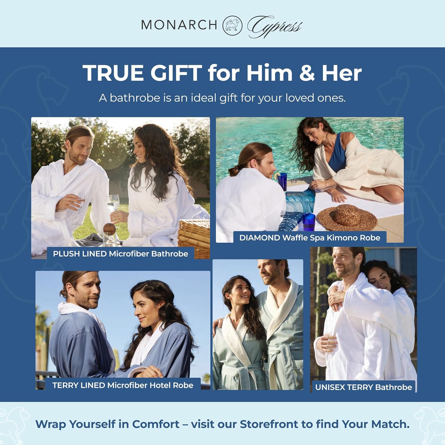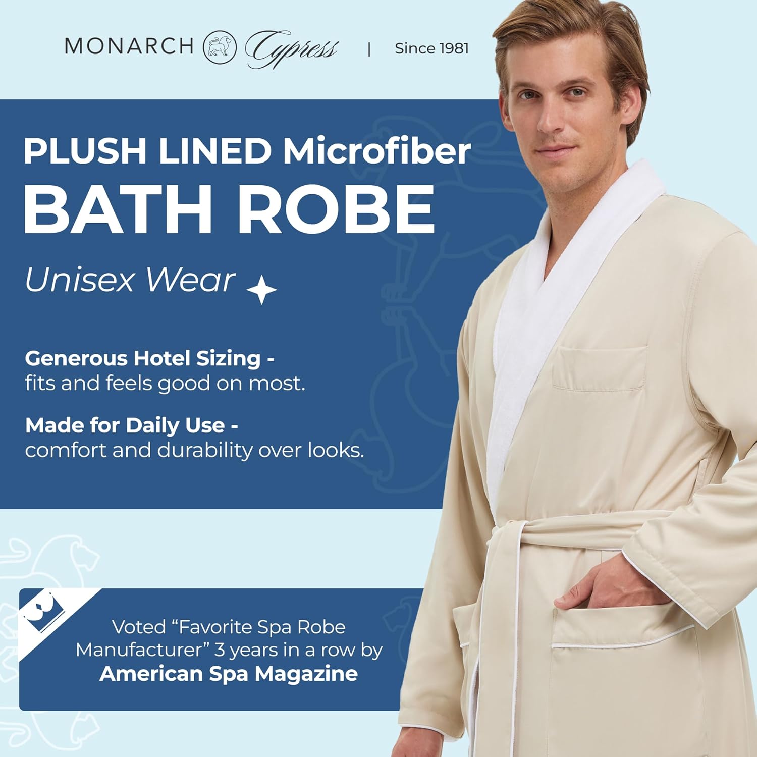 MONARCH Unisex Plush Lined Microfiber Bath Robe – Soft Shell with Polyester Lining, Resort-Grade Hotel & Spa Robe with Pocket