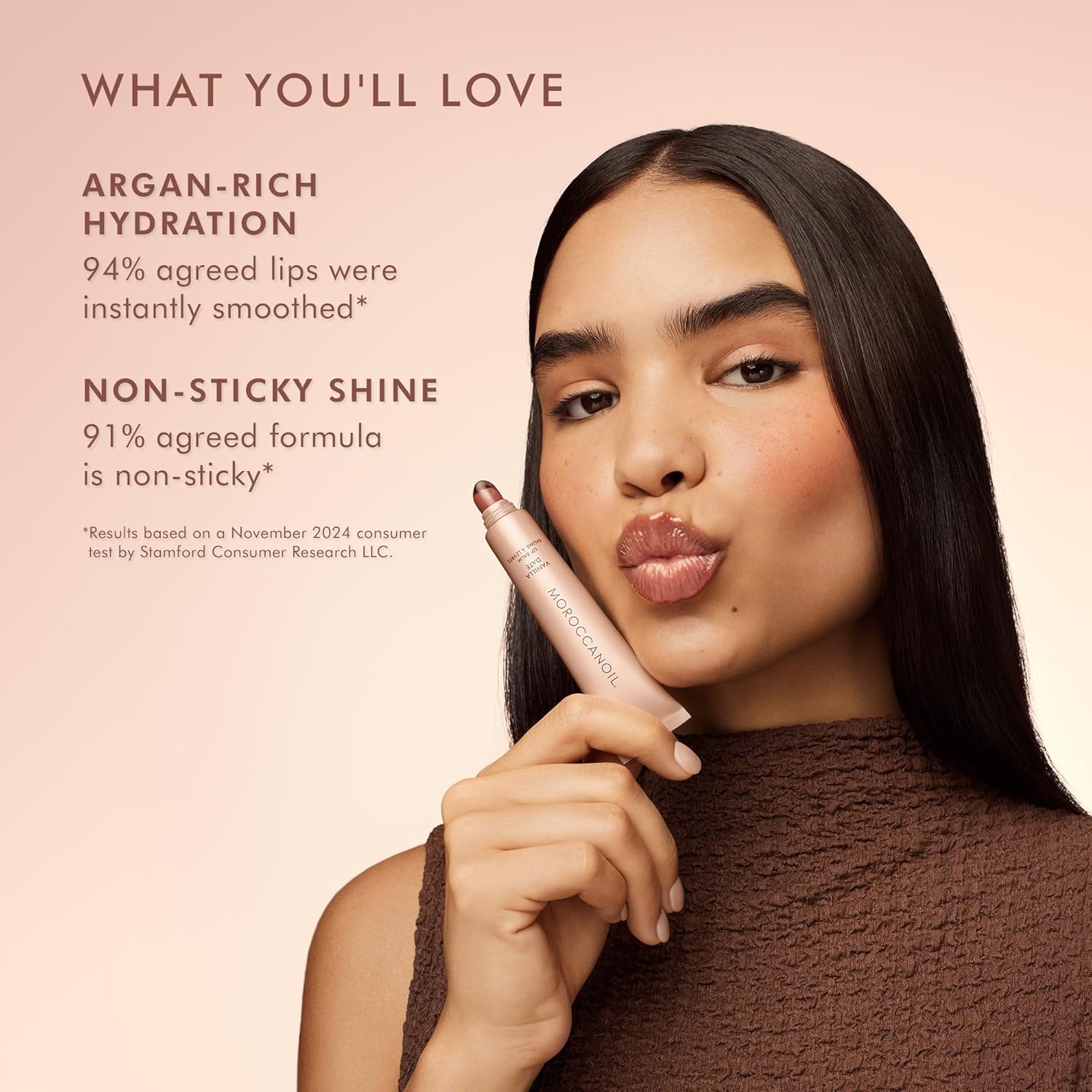 The video showcases the product in use.The video guides you through product setup.The video compares multiple products.The video shows the product being unpacked. Moroccanoil Lip Balm Merchant Video
