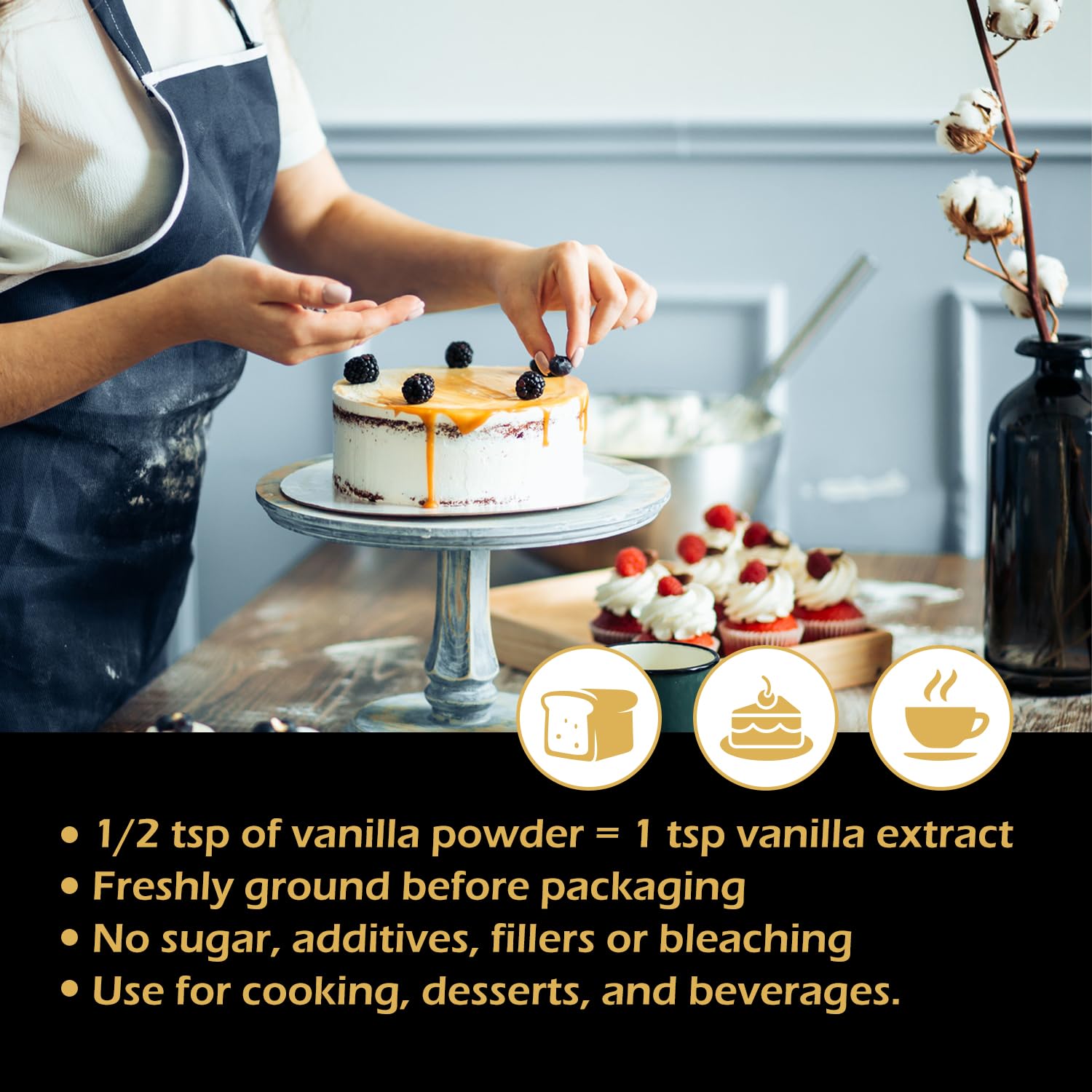 INDULGE ANYTIME: Enjoying your culinary creations with the exquisite flavor of our fresh ground vanilla perfect for keeping that full flavour in anything baked like cakes and cookies or even where you’re heating a custard base for ice cream.